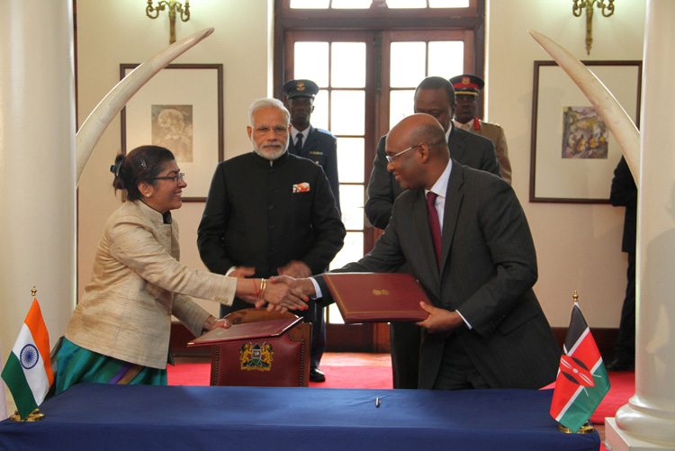 India and Kenya sign seven MoUs/Agreements during the visit of Prime Minister Shri Narendra Modi to Kenya. In pic:High Commissioner Ms. Suchitra Durai during the signing of agreements ceremony
