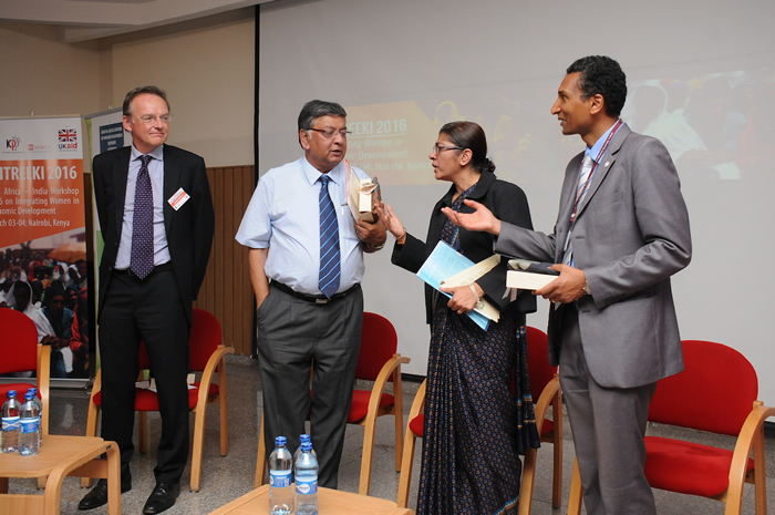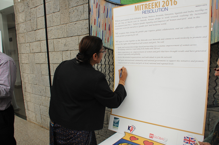 High Commissioner H.E. Ms. Suchitra Durai with the participants at the inauguration of women's empowerment programme 'Mitreeki'. The programme was organised by IPE Global with Kenya Association of Women Business Owners (KAWBO) at Strathmore Business School Nairobi on March 3, 2016.