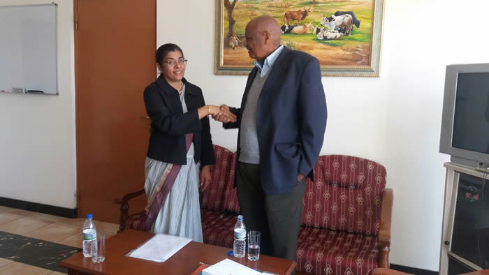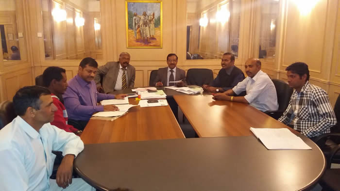 Ambassador H.E. Ms. Suchitra Durai with Foreign Minister of Eritrea, H.E. Mr. Osman Saleh(far right), Agriculture Minister H.E. Mr. Arefane Saleh (centre) and senior officials in Asmara (February 22, 2016)