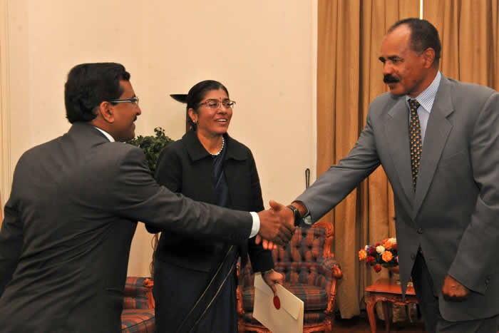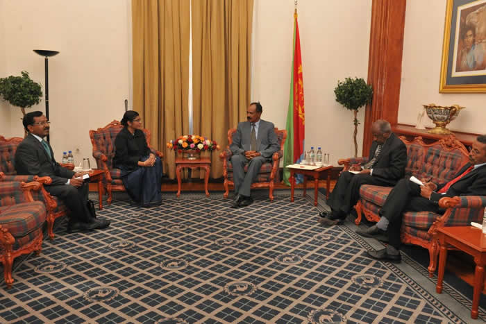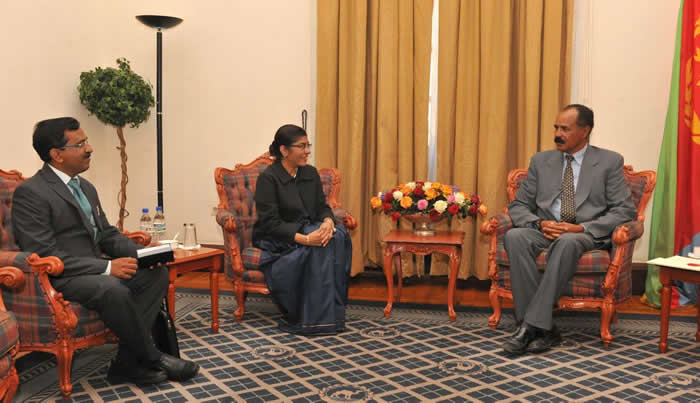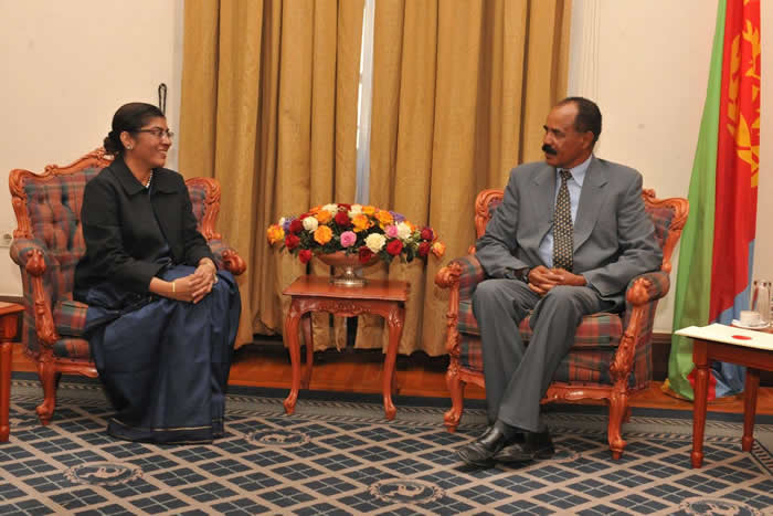 H.E. Ms. Suchitra Durai, Ambassador of India to Eritrea presenting her credentials to H.E. the President of the State of Eritrea Mr. Isaias Afwerki on 21st February, 2016 at Asmara