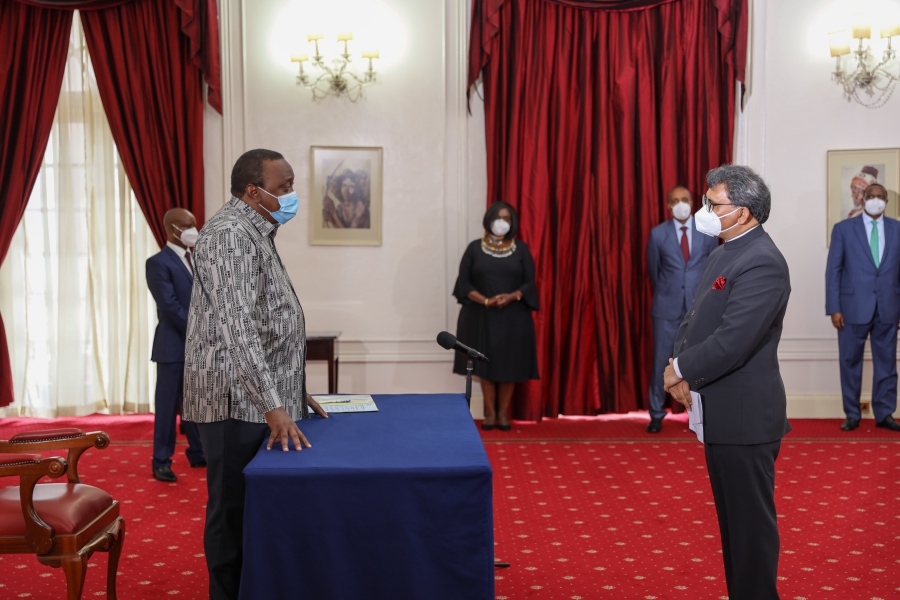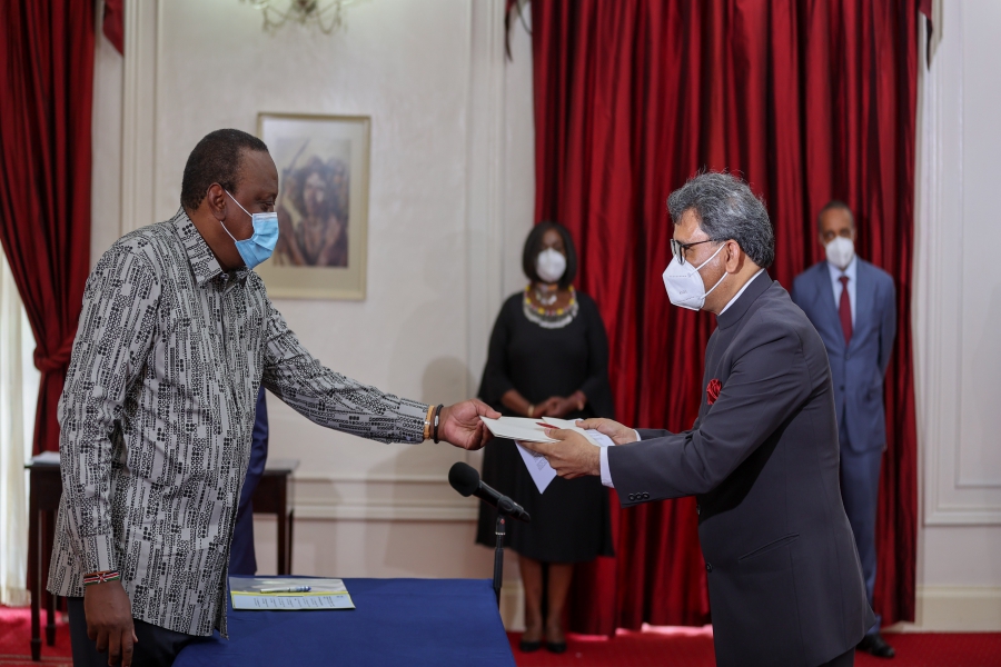 Presentation of credentials by High Commissioner Dr. Virander Paul to H.E. President Uhuru Kenyatta [Nairobi, 2 December 2020].