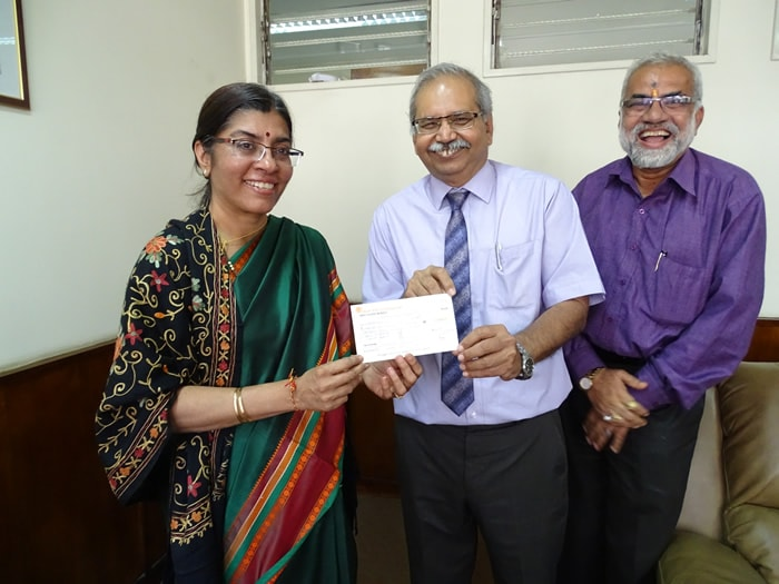The South Indian Cultural Society (SICS) Nairobi donated an amount of INR 3 Lakhs (Ksh 450,000) to the Tamil Nadu Chief Minister's Public Relief Fund for rehabilitation of the Chennai flood victims. Chairman of SICS Mr. Pere Ramakrishna and Committee Member, Mr. P. Raghupati handed over the cheque to High Commissioner H.E. Ms. Suchitra Durai on March 15, 2016.