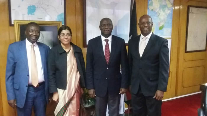 High Commissioner H.E. Ms. Suchitra Durai called on H.E. Charles Keter, Cabinet Secretary for Energy & Petroleum (January 19, 2016). Also seen in the picture are Principle Secretaries Eng. Joseph Njoroge (left) and Mr. Andrew Kamau (right)
