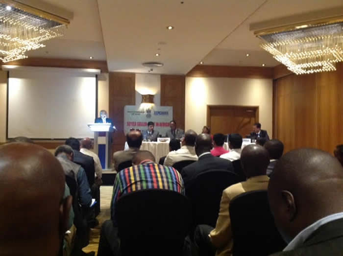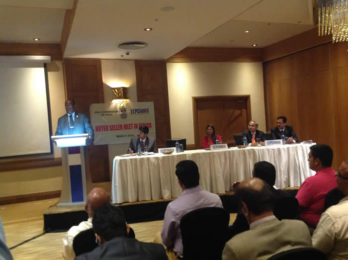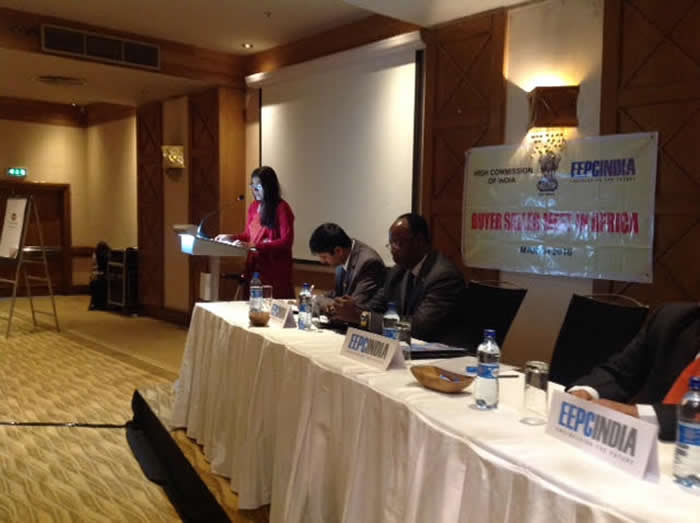 High Commissioner H.E. Ms. Suchitra Durai addresses the gathering at EEPC India Buyer Seller Meet at Hotel Intercontinental on March 14th, 2016.