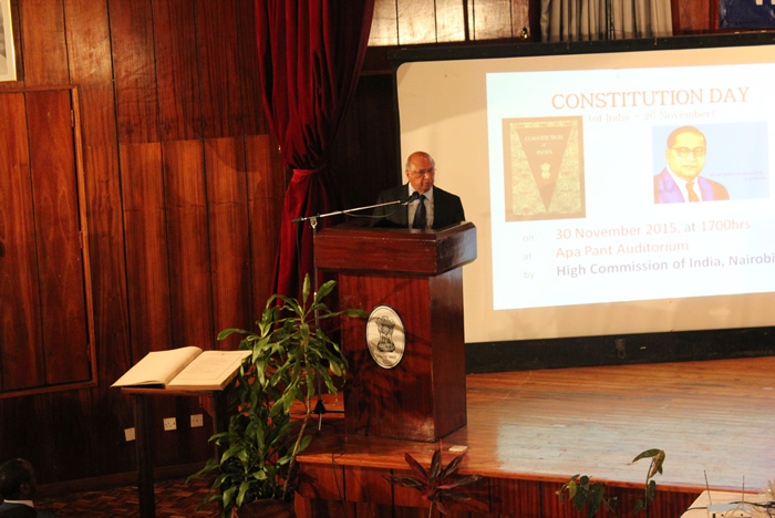 High Commissioner H.E. Ms. Suchitra Durai delivers her opening remarks during the panel discussion organised by the High Commission of India, Nairobi on 30 November 2015 to commemorate the Constitution Day of India