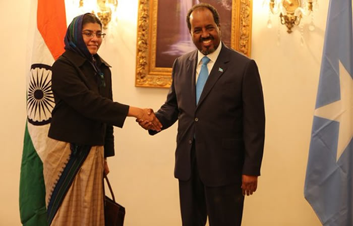 High Commissioner H.E. Ms. Suchitra Durai presents her credentials to the President of Somalia, H.E. Mr. Hassan Sheikh Mohamoud in Mogadishu