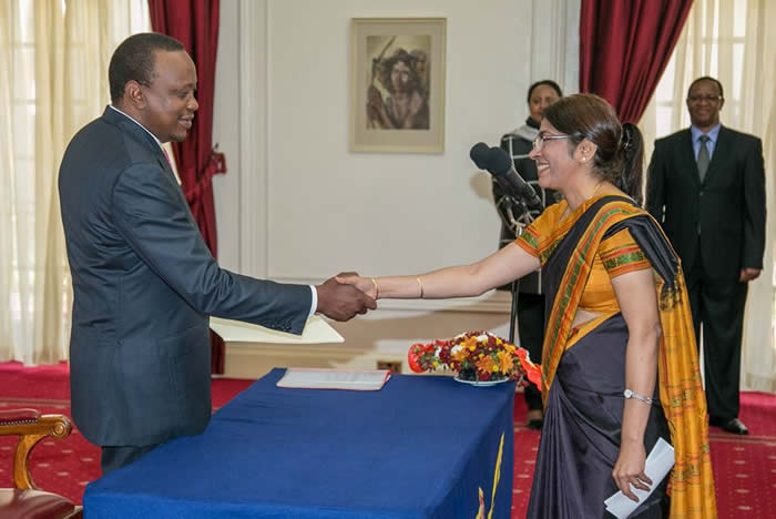High Commissioner of India to Kenya, H.E. Ms. Suchitra Durai, presented her credentials to H.E. Mr. Uhuru Kenyatta, President of the Republic of Kenya, on 15.10.2015