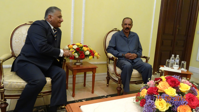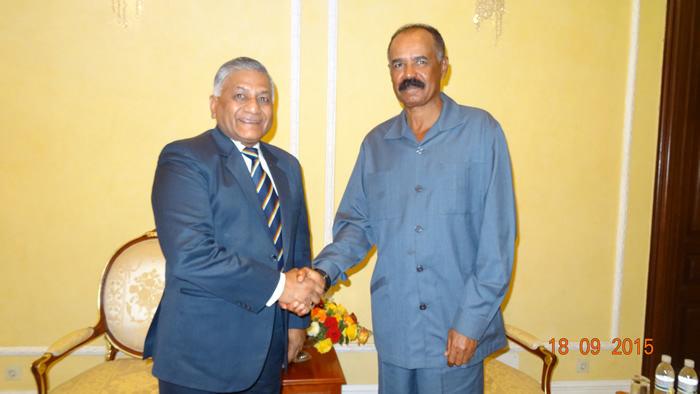 MOS Gen. V. K. Singh with President Isaias Afwerki of Eritrea in Asmara, 18 September 2015