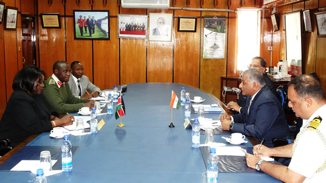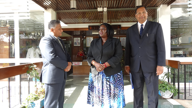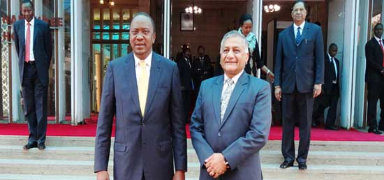 Minister of State for External Affairs with President of Kenya H.E. Mr. Uhuru Kenyatta, Kenyan Foreign Minister Ms. Amina Mohamed, Minister of Interior Major General Joseph Nkaissery and High Commissioner on 14 July 2015