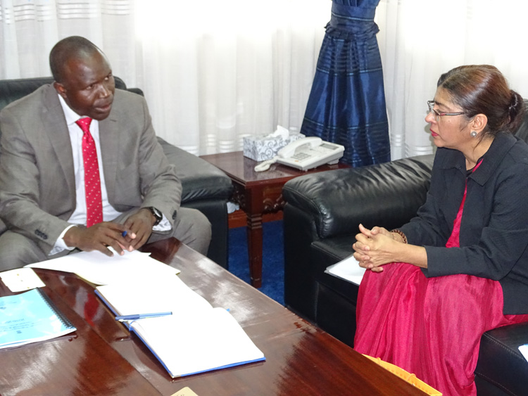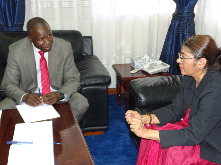 High Commissioner Ms. Suchitra Durai called on H.E. Mr. Willy Bett, Hon'ble Cabinet Secretary for Agriculture, Livestock and Fisheries in Nairobi on 25th April, 2016 to discuss on-going bilateral cooperation in the area of agriculture between India and Kenya including the extension of a USD 100 million Indian Line of Credit in the area of agricultural mechanisation, the setting up of a Soil Testing Laboratory in western Kenya and capacity building of Kenyan agricultural officers.