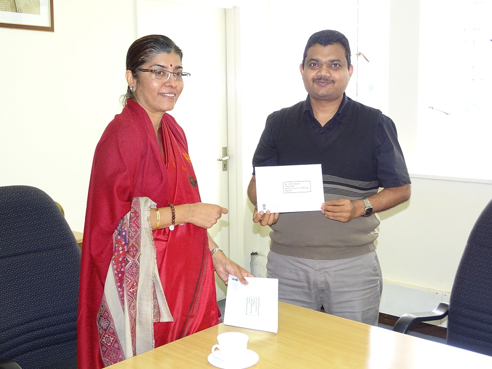 High Commissioner Ms. Suchitra Durai handed over cheques to the Chairpersons and office bearers of seven prominent diaspora/friendship associations of Kenya as grant-in-aid from the Government of India to these associations for promoting Indian culture and India-Kenya relations.