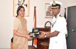 High Commissioner H.E. Ms. Suchitra Durai visited the Indian Coast Guard Ship Samarth which is on a call at the Port of Mombasa from 09 to 13 February 2016 on a friendly visit. In pic: DIG Rakesh Pal, Commanding Officer of ICGS Samarth pays a courtesy call on High Commissioner