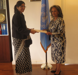 High Commissioner of India to Kenya and Permanent Representative of India to UNEP & UN-Habitat, H.E. Ms. Suchitra Durai, presented credentials to H.E. Ms. Sahle Work Zewde, Director General, United Nations Office at Nairobi (November 4, 2015)